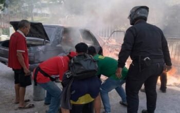 “Tidak mengenai mereka, tapi kena tangki mobil dam dibengkel. Lemparan itu membuat korek api meletup. Kemudian pria berbaju hitam berlari tidak tahu kemana,”jelas Tanjung.