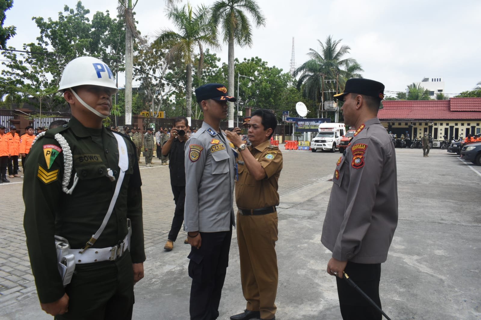 AKSARALOKA.COM, PONTIANAK – TNI/Polri bersama Pemerintah Kota (Pemkot) Pontianak telah mempersiapkan pengamanan menjelang perayaan Idulfitri 1444 Hijriyah di Kota Pontianak. Untuk memastikan kesiapan petugas, Wakil Wali Kota Pontianak Bahasan bersama Kapolresta Pontianak Kombes Pol Adhe Hariadi melakukan pemeriksaan petugas yang akan melakukan pengamanan pada Apel Gelar Pasukan Opspol Ketupat Kapuas 2023 di Halaman Mapolresta Pontianak, Senin (17/4/2023).