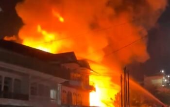 AKSARALOKA.COM, PONTIANAK – Sebanyak empat ruko di kawasan Pasar Seruni, Jalan Panglima Aim Kecamatan Pontianak Timur hangus terbakar, Sabtu 10 Juni 2023, sekitar pukul 09.30 WIB.