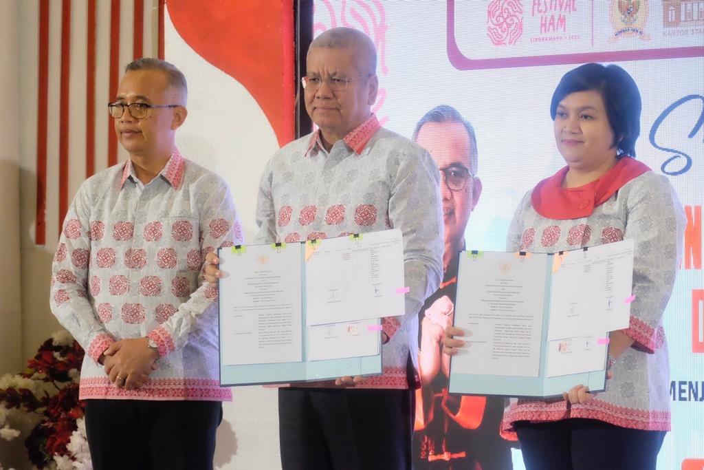 SINGKAWANG – Pemerintah Provinsi Kalimantan Barat (Kalbar) melakukan penandatanganan MoU dengan Komnas Hak Asasi Manusia (HAM), di Hotel Swiss Bell In Singkawang, Kalbar, pada Senin malam (16/10/2023).