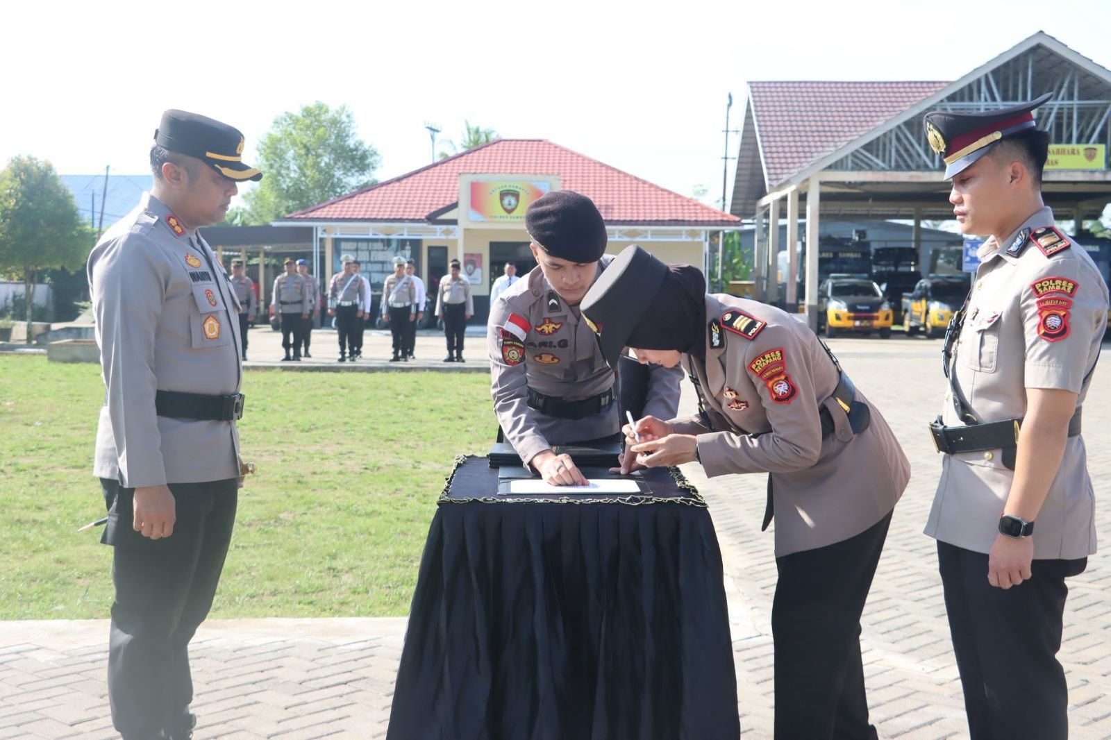 Aksaraloka.com, Sambas-Polres Sambas menggelar Serah Terima Jabatan (Sertijab) untuk beberapa posisi penting, termasuk Kasat Lantas, Kasat Narkoba, Kasat Binmas, Kapolsek Teluk Keramat, dan Kapolsek Sajingan Besar.