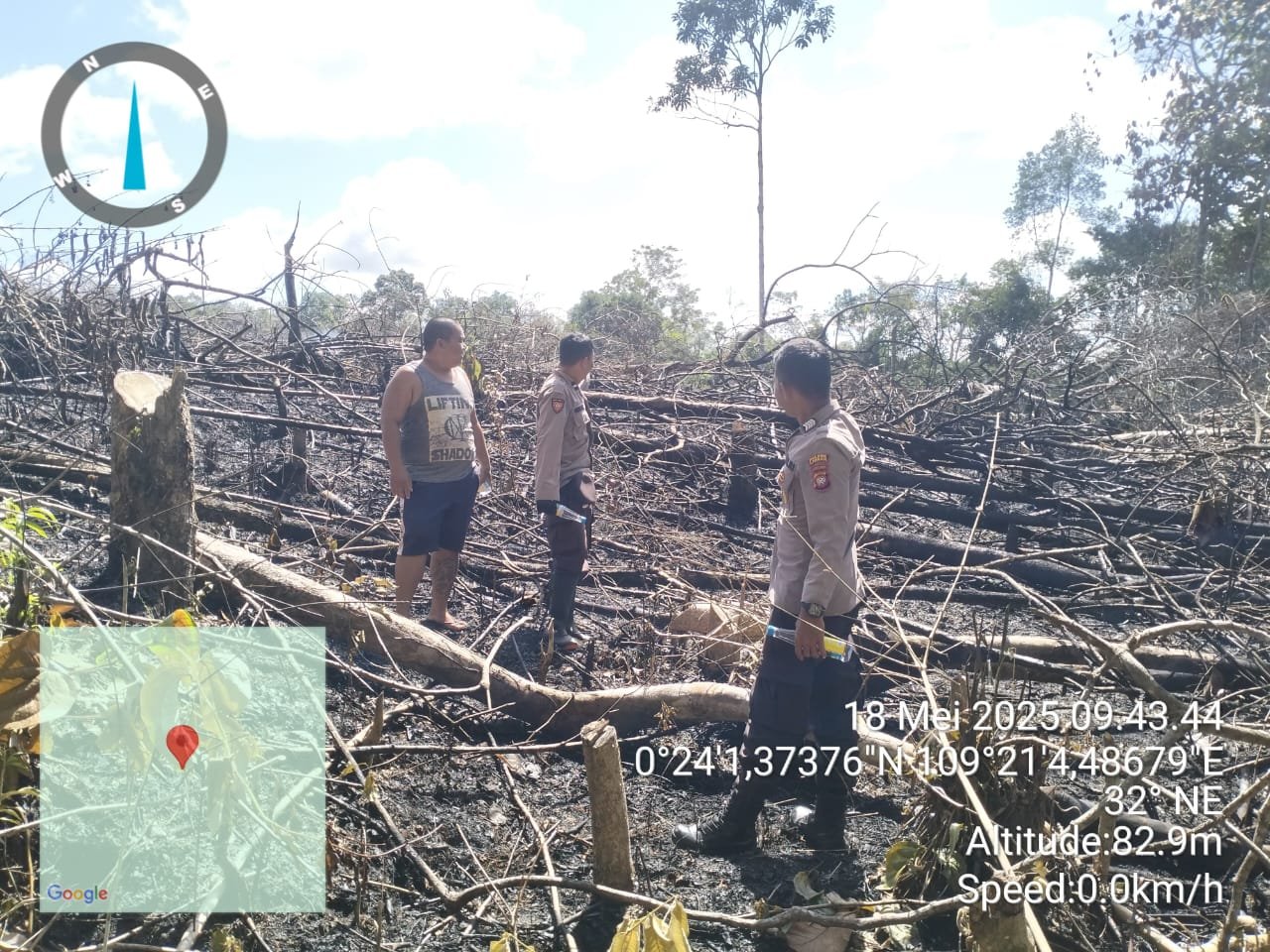 LANDAK – Personel Polsek Menjalin mendatangi sumber titik api yang terletak di Dusun Baweng, Desa Lamoanak, Kecamatan Menjalin, Kabupaten Landak. Minggu, 18 Mei 2025.