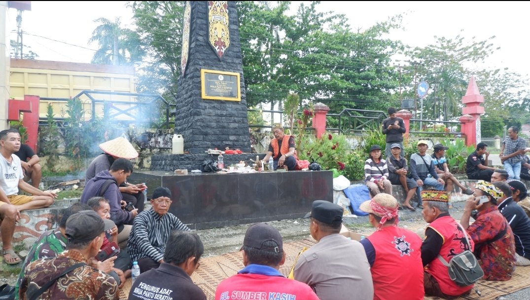 Dipimpin seorang Panyangahatn, ritual tutup saka digelar DAD Kecamatan Ngabang di monumen Batu Pakat Wilayah Adat Binua Pantu Serarus, di kawasan pasar Terminal Bus Ngabang, Kabupaten Landak. Jumat, 23 Mei 2025, yang dimulai pukul 14.00 wib.