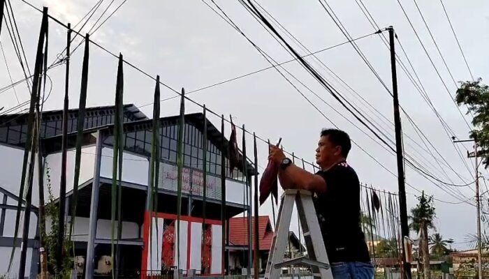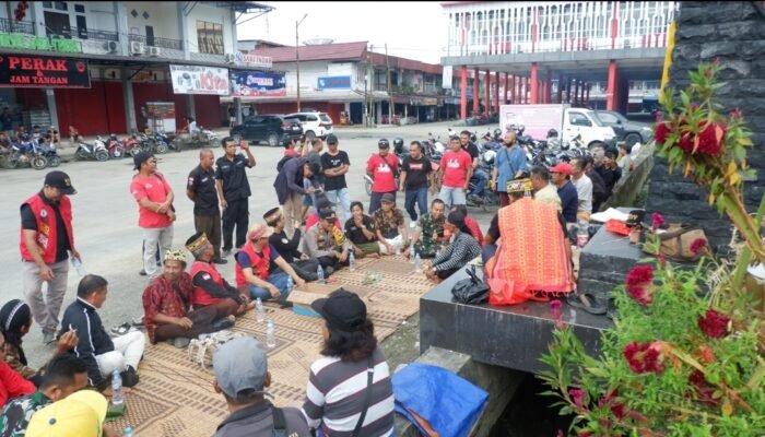 LANDAK – Dengan paraga adat atau perlengkapan adat seperti ayam yang telah dipotong, poe atau lemang, beras yang disimpan dalam mangkok dengan koin serta telur bulat diatasnya, termasuk sirih-pinang, lilin dan perlengkapan lain-lain dihampar pada sebuah tikar kecil yang sudah disiapkan.