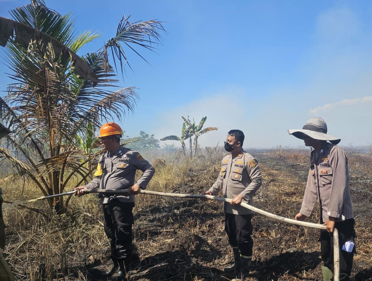 Aksaraloka com, Sambas-Polsek Jawai bersama tim gabungan berjibaku memadamkan api di Desa Sarang Burung Danau, Kecamatan Jawai, Kabupaten Sambas pada Minggu (06/07/2025) siang.