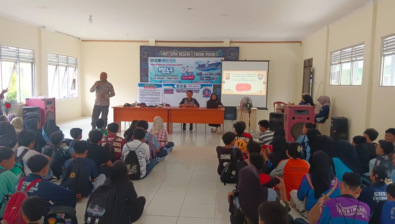 AKSARALOKA.COM, MELAWI – Polsek Kota Baru bersama SMKN 1 Tanah Pinoh berkomitmen memperkuat upaya pencegahan perundungan (bullying) di lingkungan sekolah. Komitmen ini ditandai dengan penandatanganan ikrar anti-bullying yang dilaksanakan dalam rangka Masa Pengenalan Lingkungan Sekolah (MPLS), Kamis (17/7/2025).