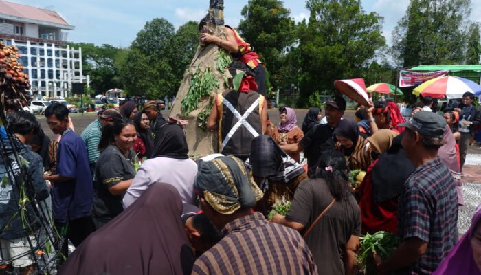 Kirab budaya yang berakhir di halaman Kantor Bupati Landak, keseruan dan kehebohan memuncak saat warga berebut gunungan berisi berbagai hasil bumi yang mayoritas berisi sayur mayur, yang dibuka oleh Bupati Landak, Karolin Margret Natasa.