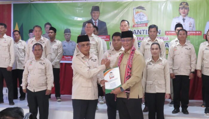 LANDAK – Ketua DPW Tani Merdeka Indonesia (TMI) Kalbar, M. Saufi, melantik Pengurus Dewan Pimpinan Daerah (DPD) Tani Mardeka Indonesia Kabupaten Landak periode 2025–2030 di Aula Hotel Hanura, Sabtu, (19/7/2025).