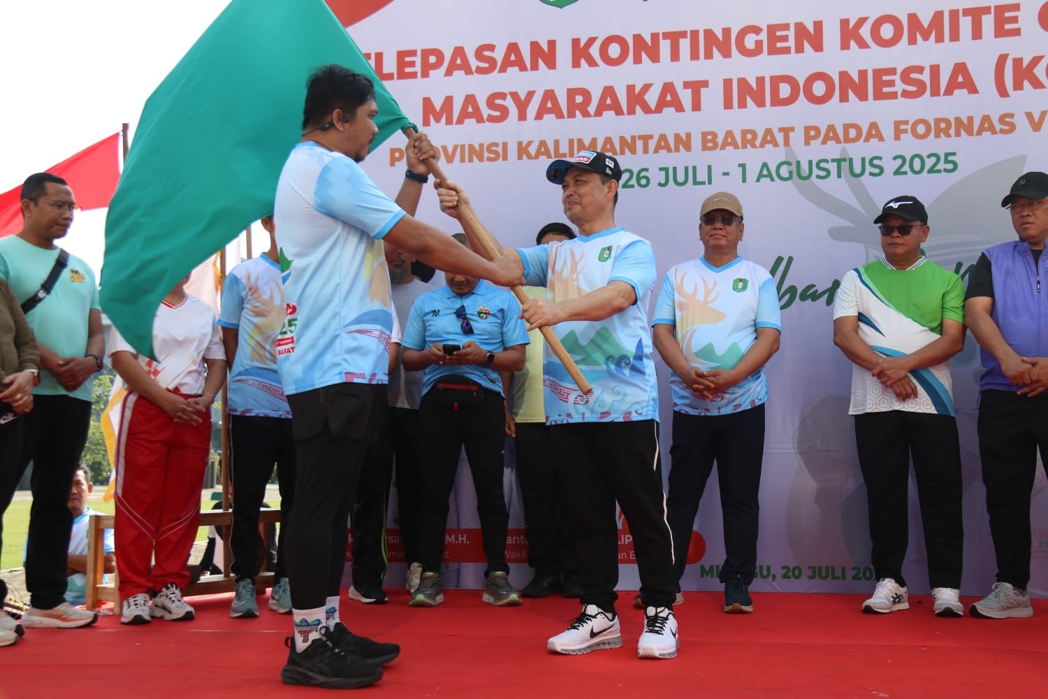 PONTIANAK – Gubernur Kalimantan Barat Ria Norsan secara resmi melepas kontingen Komite Olahraga Rekreasi Masyarakat Indonesia (KORMI) Kalbar yang akan berlaga di Festival Olahraga Rekreasi Nasional (FORNAS) VIII di Nusa Tenggara Barat, Minggu (8/7/2025).