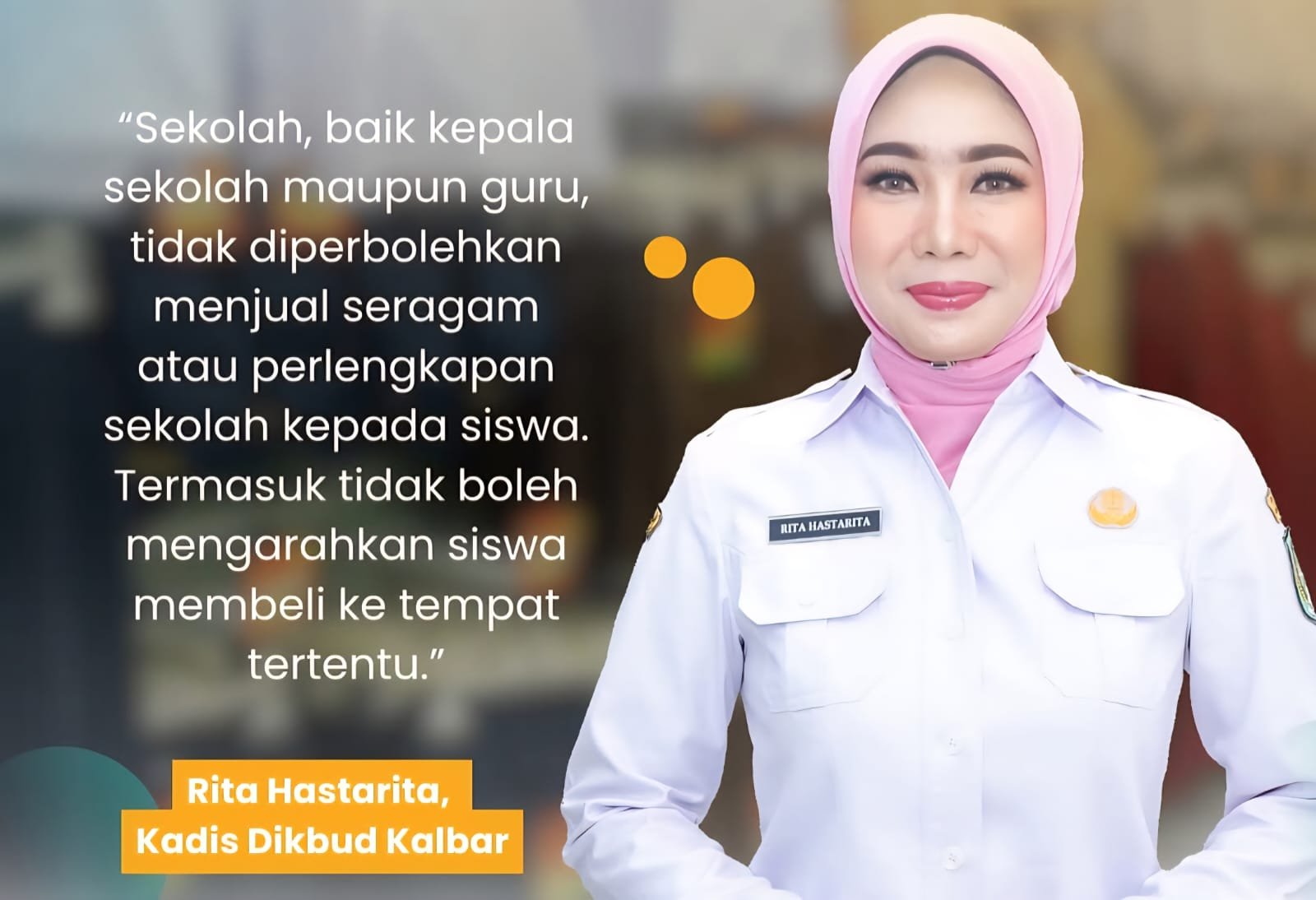 AKSARALOKA.COM, PONTIANAK – Kepala Dinas Pendidikan dan Kebudayaan (Kadisdikbud) Kalimantan Barat, Rita Hastarita, menegaskan bahwa sekolah, baik kepala sekolah maupun guru, tidak diperbolehkan menjual seragam atau perlengkapan sekolah kepada siswa. Ia juga mengingatkan agar pihak sekolah tidak mengarahkan siswa membeli di tempat tertentu, Jumat 25 Juli 2025.