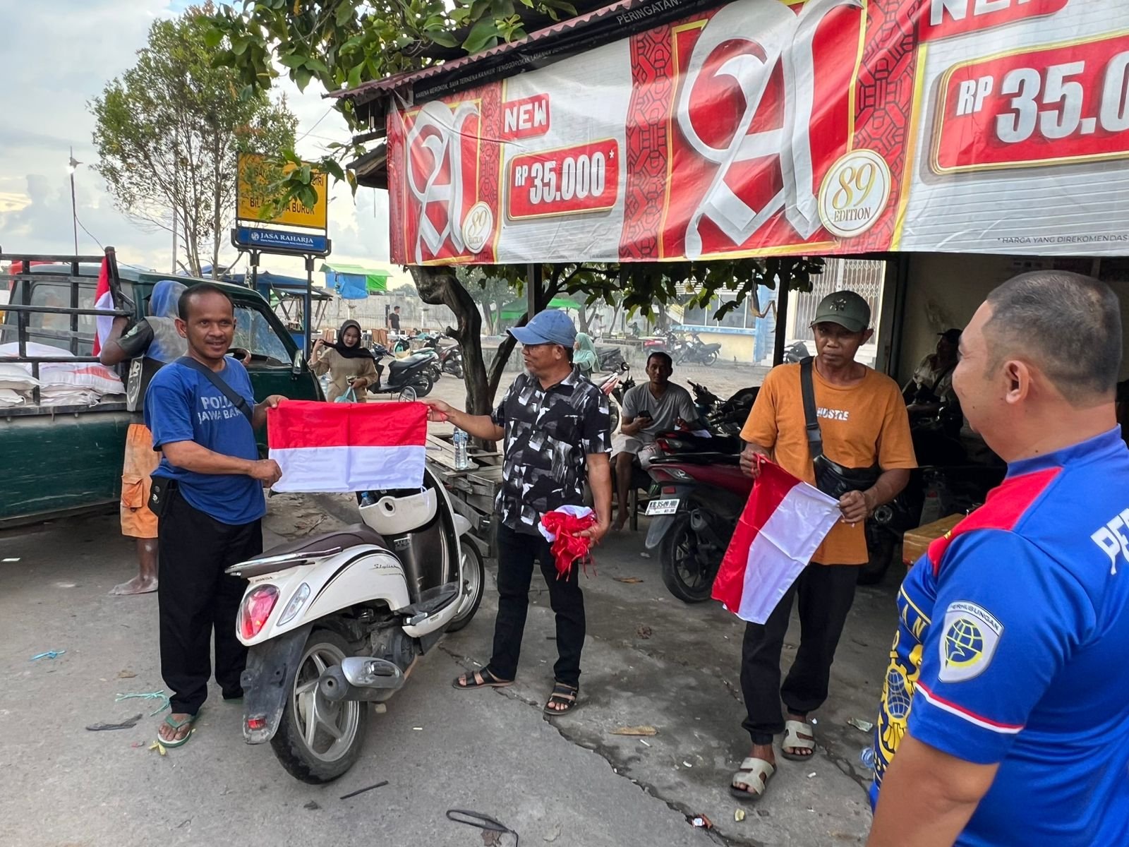 Bendera dan stiker itu langsung dipasang di kapal-kapal dan warung-warung yang ada di area pelabuhan, membuat suasana semakin semarak merah putih.