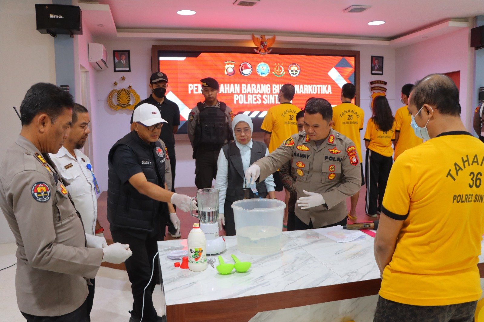 Sementara usai release yang digelar, pemusnahan barang bukti juga dilaksanakan oleh Polres Sintang yang turut diikuti oleh Kepala Kejaksaan Negeri Sintang Erni Yusnita, BNN dan Penasehat Hukum.