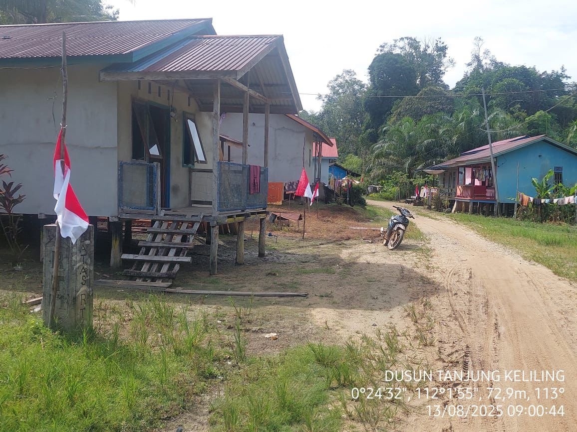 KAPUAS HULU – Menjelang peringatan Hari Kemerdekaan ke-80 tahun Republik Indonesia, warga Dusun Tanjung Keliling, Desa Tanjung Keliling, Kecamatan Seberuang, Kapuas Hulu, Kalimantan Barat (Kalbar), mengibarkan bendera Merah Putih setengah tiang.