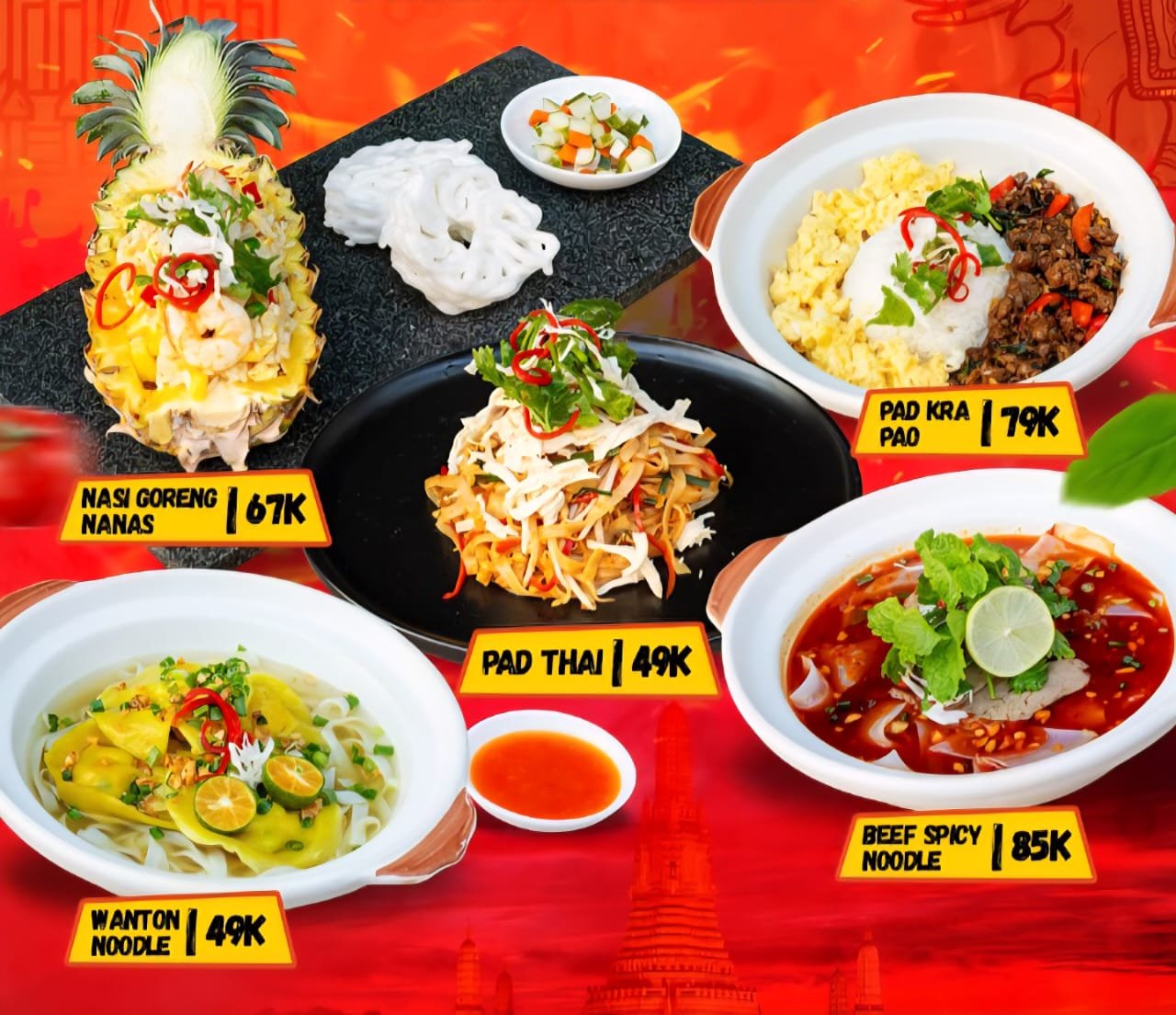 Promo ini menghadirkan lima menu unggulan khas Thailand yang autentik dan menggugah selera. Mulai dari Pad Thai (Rp 49.000 nett), mie tumis khas Thailand dengan perpaduan rasa asam, manis, dan gurih yang seimbang.