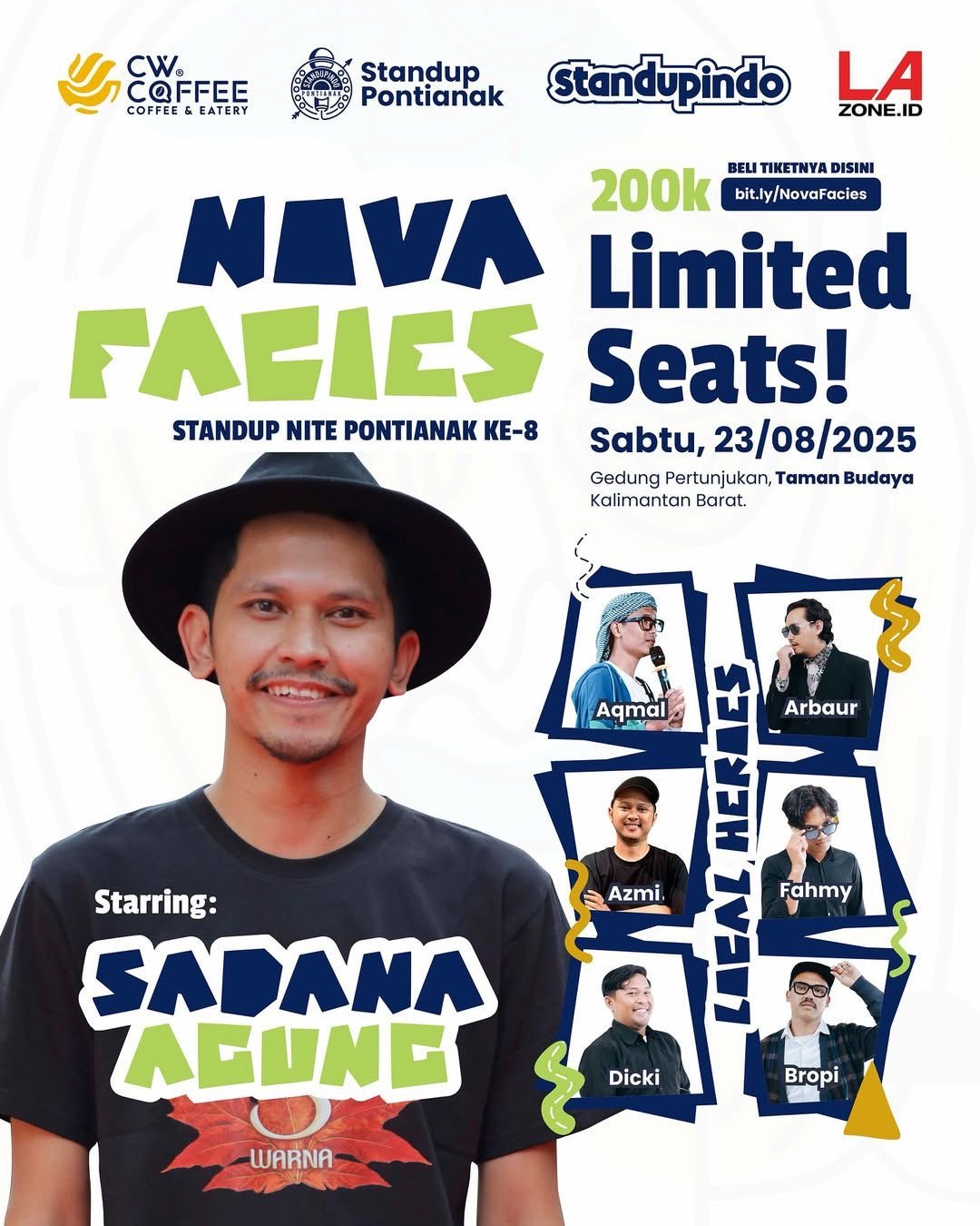 Mengusung tema “Nava Facies” yang berarti wajah baru, SUN kali ini bakal menghadirkan Sadana Agung, komika nasional dengan ciri khas lawakan cerdas dan jenaka.