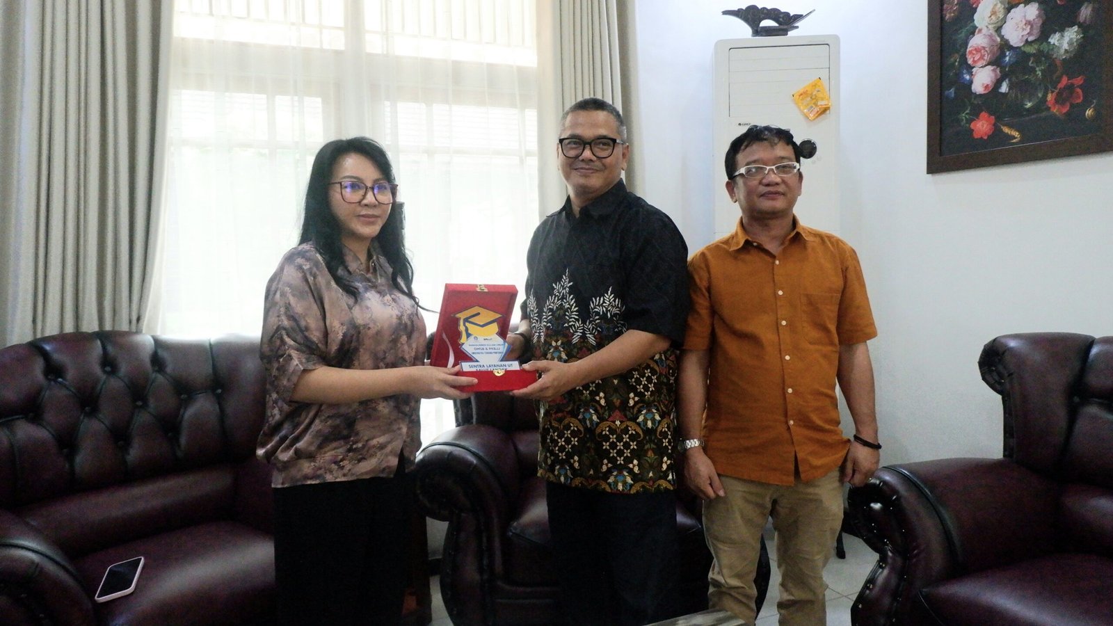LANDAK – Direktur Universitas Terbuka Pontianak, Romi Siswanto bersama Kepala Sentra Layanan UT (Salut) Landak, L. Sahat Tinambunan bersilaturahmi dengan Bupati Landak, Karolin Margret Natasa di Pendopo Bupati Landak. Jumat, 12 September 2025.