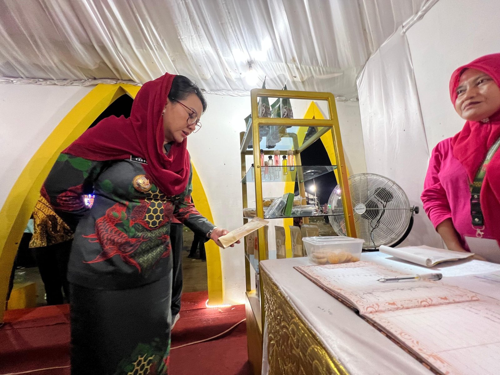 KAPUAS HULU – Bupati Landak, Karolin Margret Natasa, meninjau stand pameran Kabupaten Landak pada acara MTQ ke-33 tingkat Provinsi Kalimantan Barat di Putussibau, Kabupaten Kapuas Hulu. Minggu, (14/09/25), malam.