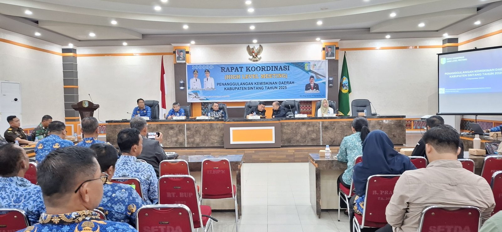 Aksaraloka.com, SINTANG-Pemerintah Kabupaten Sintang melalui Badan Perencanaan Pembangunan Daerah (Bappeda) menggelar High Level Meeting (HLM) Penanggulangan Kemiskinan Kabupaten Sintang Tahun 2025 di Balai Praja, kompleks Kantor Bupati Sintang, Rabu (17/9/2025).