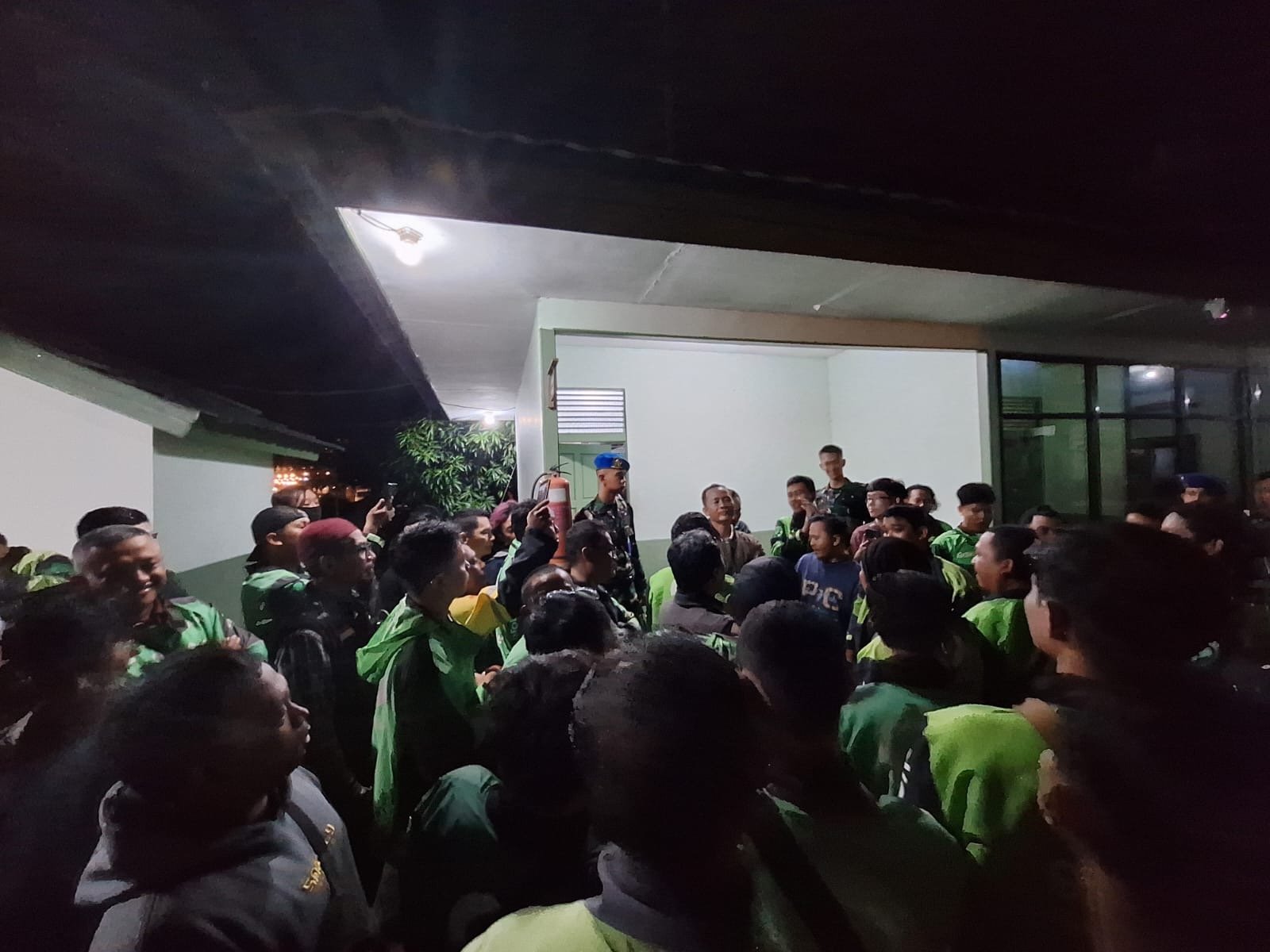 Ratusan pengemudi ojol berkumpul sejak sore hingga malam, mendampingi Teguh dan mendesak agar kasus diproses secara hukum.