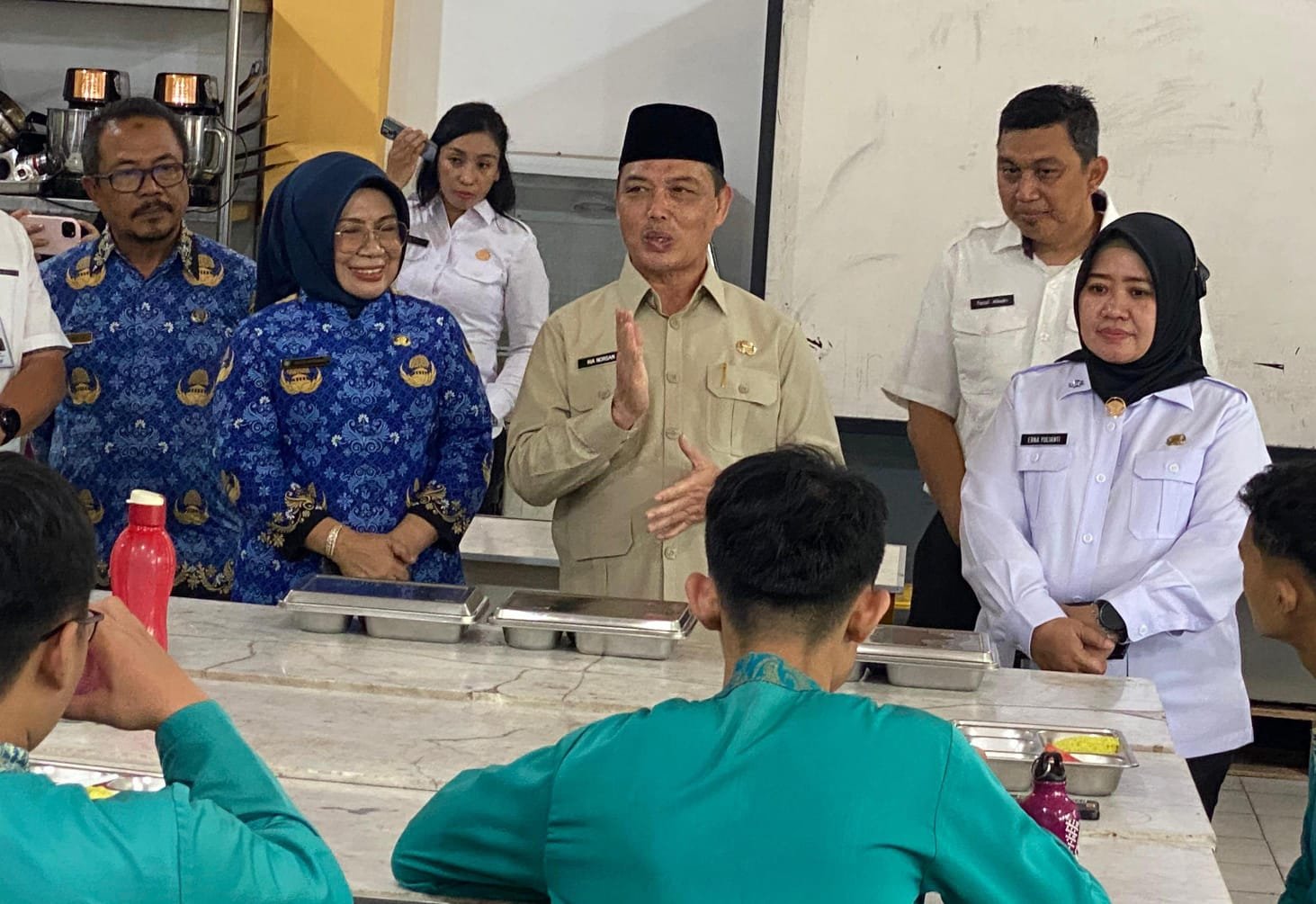 Selain meninjau menu MBG, Gubernur juga berkesempatan mengedukasi pola makan yang sehat dengan ratusan pelajar di dalam kelas.