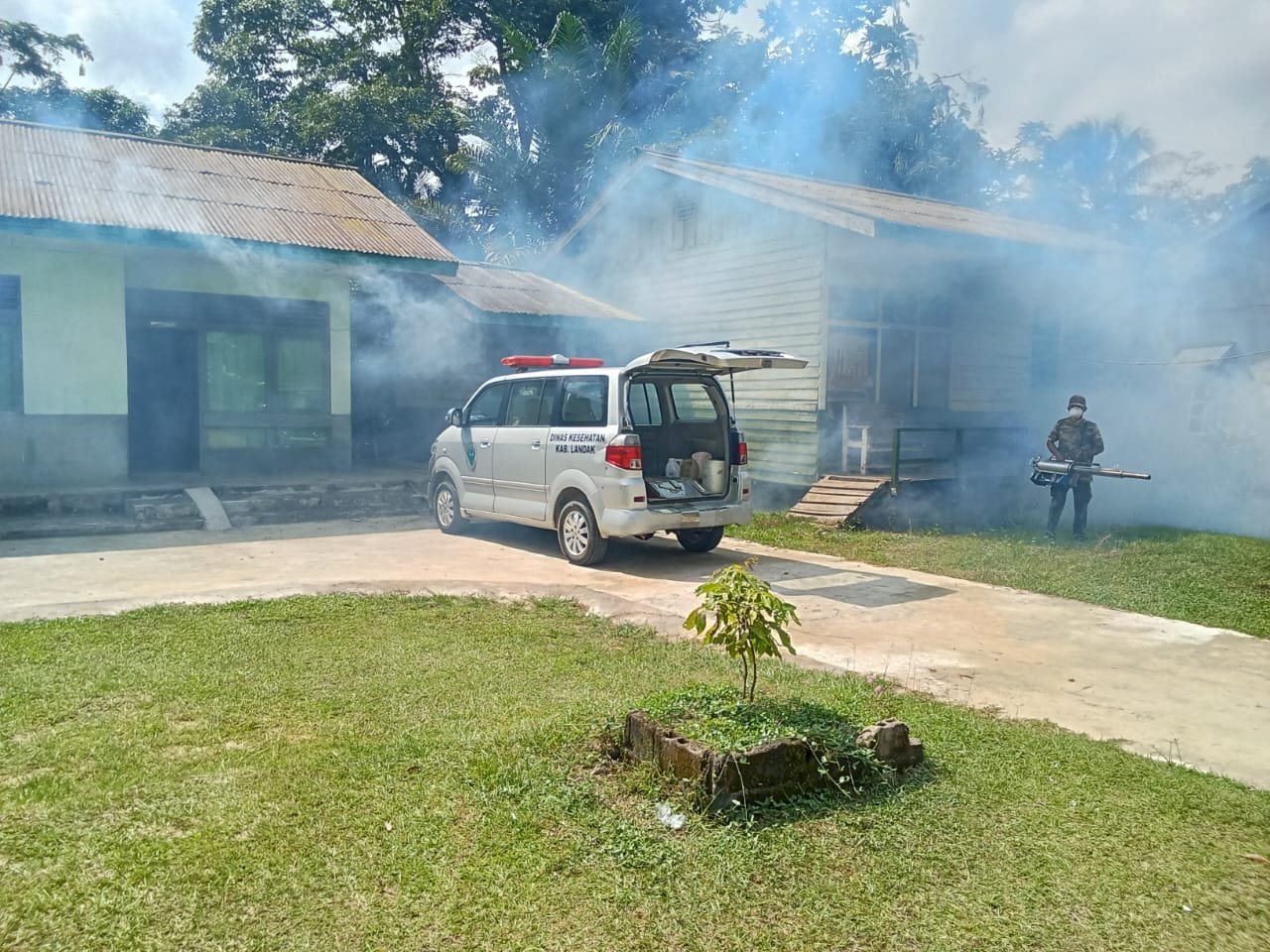 LANDAK – Dalam upaya mencegah penyebaran penyakit Demam Berdarah Dengue (DBD), Koramil 01/Menjalin bersama tim gabungan dari Puskesmas dan pemerintah Kecamatan Menjalin melakukan fogging atau pengasapan di lingkungan Makoramil serta di rumah warga yang terkonfirmasi DBD di Dusun Sungai Bandung, Desa Menjalin. Senin, (6/10/2025).
