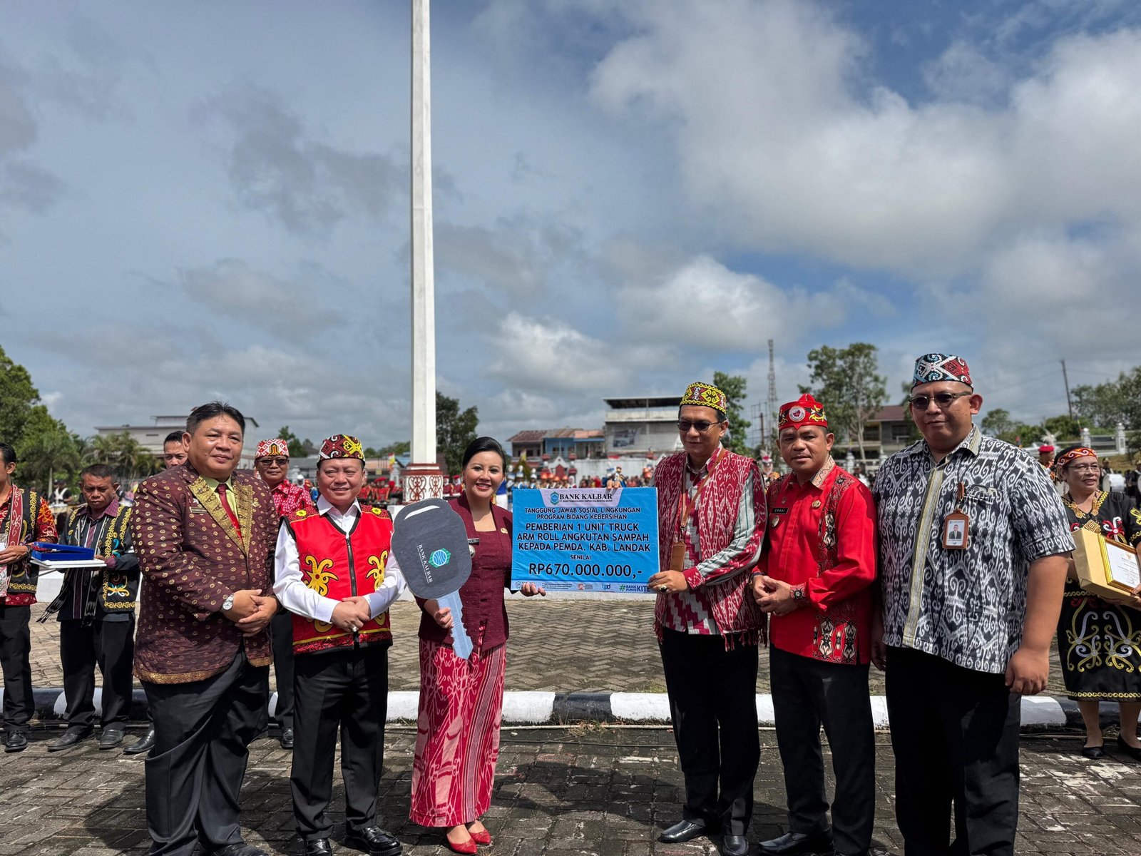 Setelah upacara dilanjutkan dengan penyerahan sejumlah piagam penghargaan kepada Pemerintah Kabupaten berupa penghargaan Pengawasan Arsip Eksternal dari Provinsi Kalbar dan satu unit truk arm roll dari BPD Kalbar.