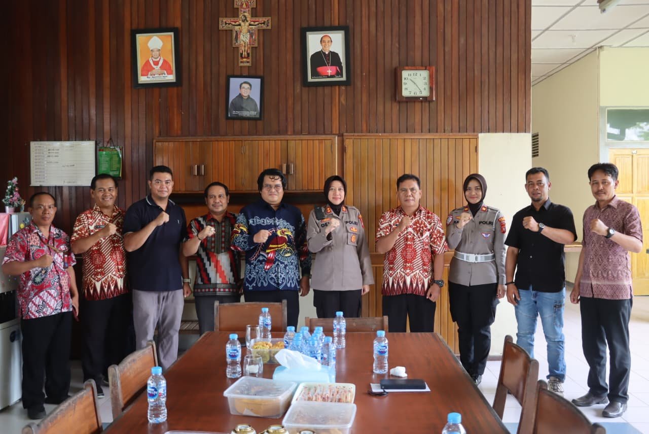 LANDAK – Kapolres Landak, AKBP Devi Ariantari, melaksanakan kunjungan silaturahmi bersama jajaran Polres Landak dengan Pengurus Paroki Salib Suci Ngabang di Sekretariat Paroki Salib Suci Ngabang, Jl. Pemuda, Kecamatan Ngabang, Kabupaten Landak. Kamis, (16/10/2025).