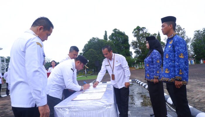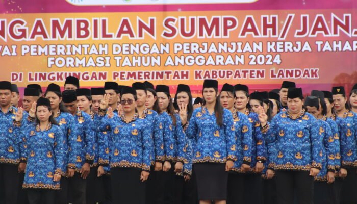 LANDAK – Pengambilan sumpah/ janji jabatan serta penyerahan SK, dilakukan Pemerintah Kabupaten Landak kepada 455 Pegawai Pemerintah dengan Perjanjian Kerja (PPPK) tahap II formasi tahun anggaran 2024 di Halaman Kantor Bupati Landak. Rabu, 22 Oktober 2025, pagi.