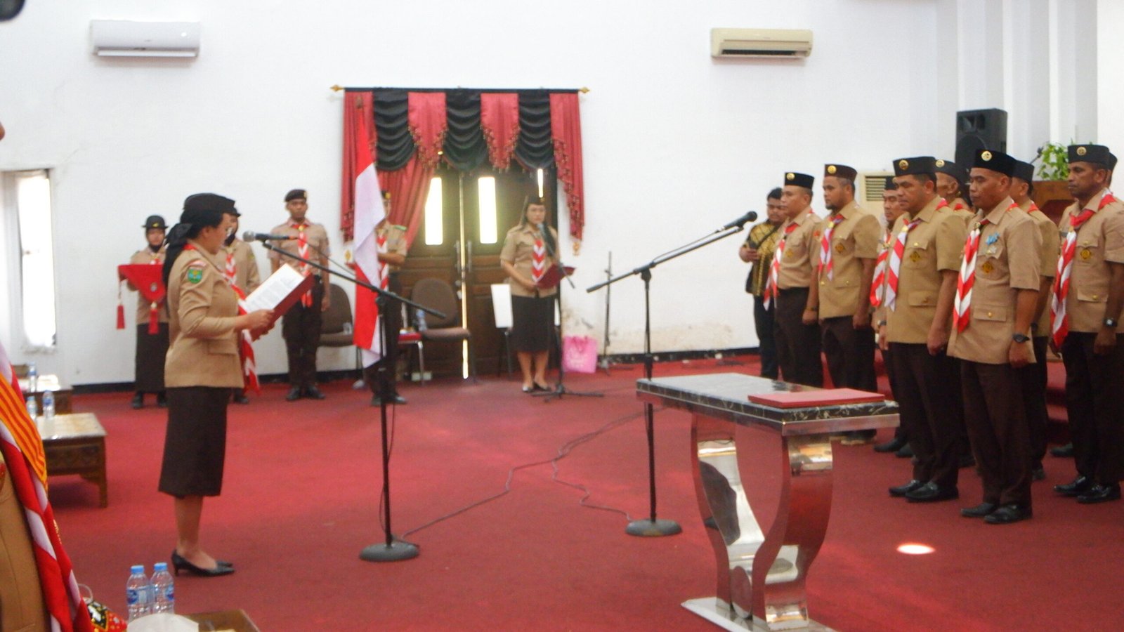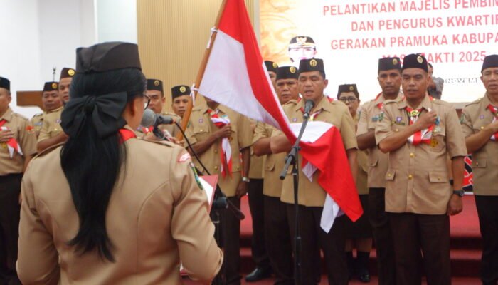 LANDAK – Bupati Landak, Karolin Margret Natasa, selaku Ketua Majelis Pembimbing Cabang (Mabicab) Gerakan Pramuka Kabupaten Landak, melantik pengurus Kwartir Cabang (Kwarcab) Gerakan Pramuka Kabupaten Landak masa bakti 2025–2030 di Aula Besar Kantor Bupati Landak. Sabtu, 8 November 2025.