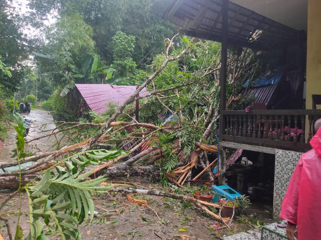 Selain merusak bangunan, angin kencang juga menumbangkan sejumlah pohon, merobohkan tiang listrik, serta menyebabkan beberapa warga mengalami luka.