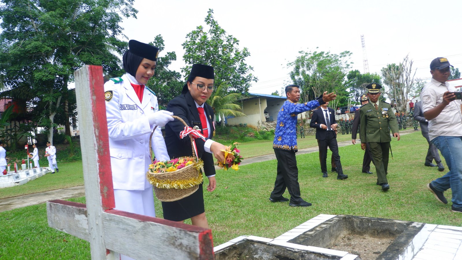Dalam rangkaian upacara Bupati Karolin melakuka prosesi peletakkan karangan bunga. Upacara ziarah kemudian ditutup dengan prosesi tabur bunga di pusara makam oleh para undangan.
