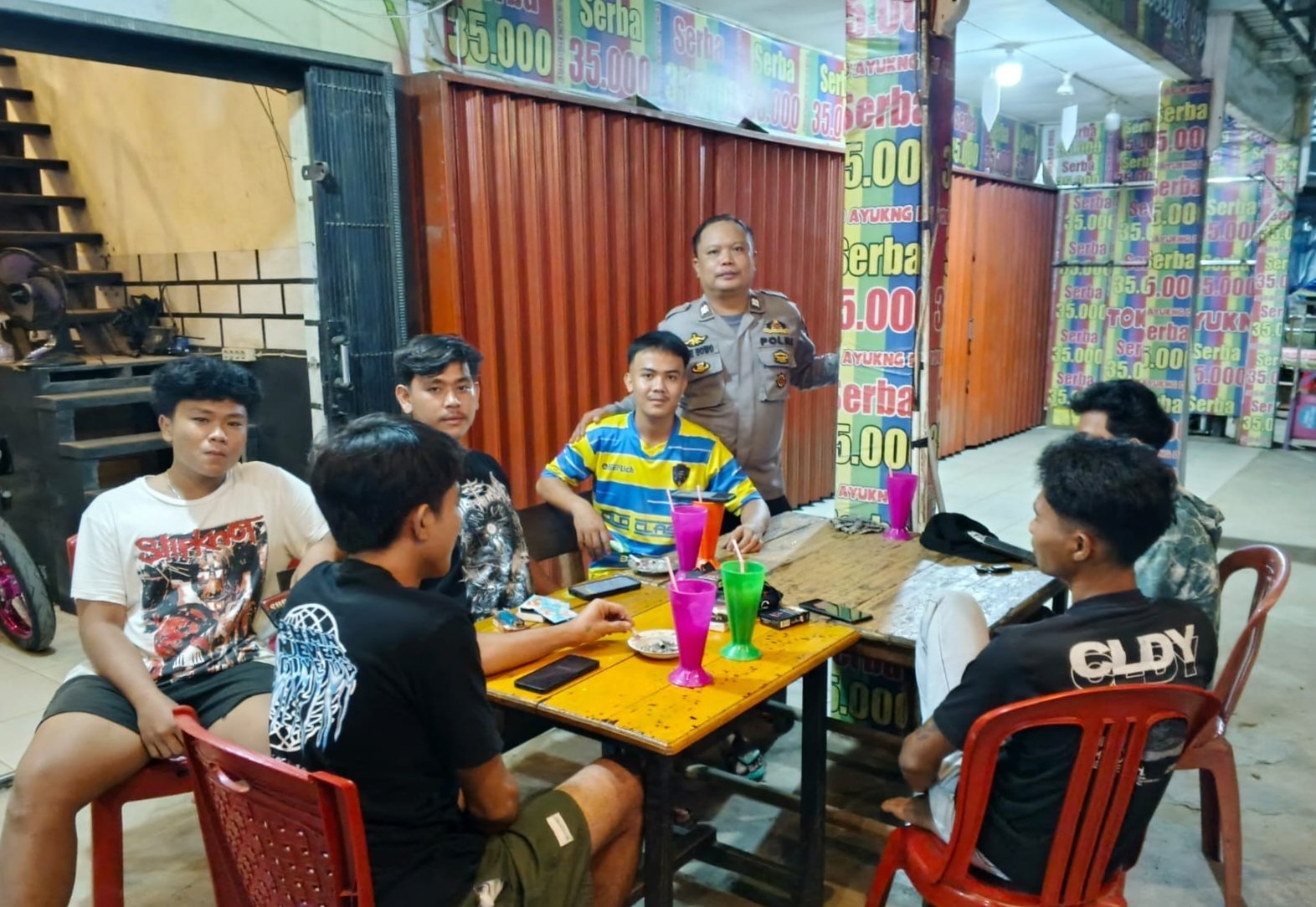 LANDAK — Petugas Polsek Sengah Temila melaksanakan patroli malam dan menyambangi warga yang sedang duduk santai di lingkungan mereka, Rabu malam (26/11/2025).