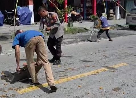Pembersihan dilakukan secara gotong royong bersama warga agar jalur lalu lintas kembali aman dilewati.