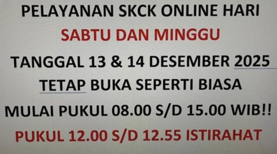 Pelayanan ini akan berlangsung mulai tanggal 12-15 Desember 2025, dengan jam operasional mulai pukul 08.00-15.00 WIB.