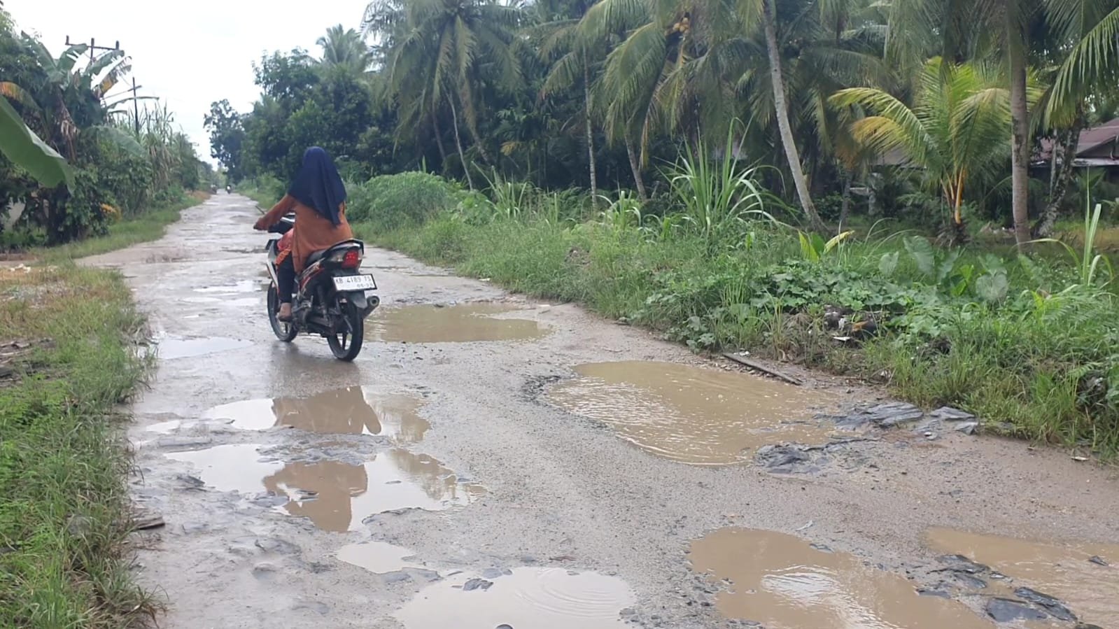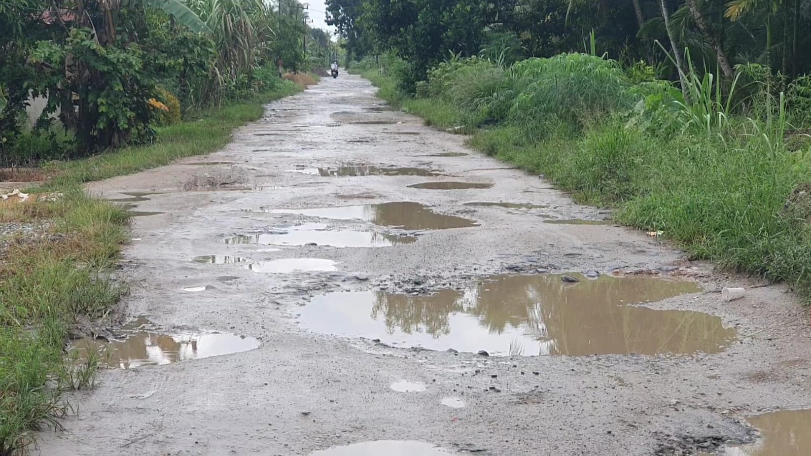 “Banyak lubang dan sering menyebabkan warga terjatuh. Anak-anak sekolah dan warga yang bekerja sangat terganggu,” ujarnya.