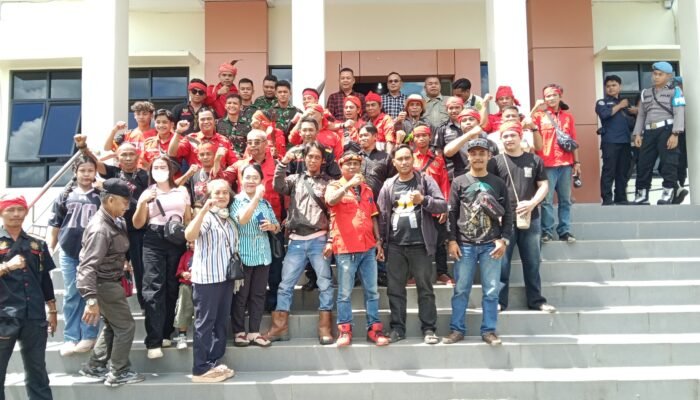 LANDAK – Puluhan warga sempat membentangkan spanduk dan melakukan orasi sebelum pelaksanaan pembacaan putusan terhadap dua orang warga Dusun Nangka, Desa Saham, Kecamata Sengah Temila, terdakwa kasus pencurian TBS yang sebelumnya dilaporkan PT SMS di depan pintu masuk Pengadilan Negeri Ngabang, Kabupaten Landak. Senin, 15 Desember 2025.