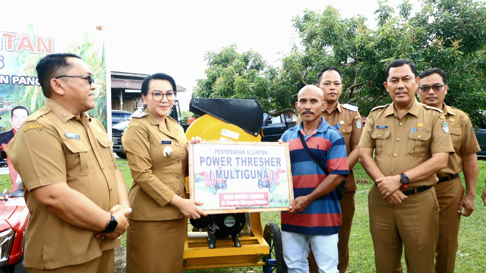 LANDAK – Bupati Landak, Karolin Margret Natasa, menyerahkan bantuan berbagai jenis alat dan mesin pertanian kepada pengelola Brigade Pangan, Kelompok Tani dan UPJJ tahun anggaran 2025, di halaman Kantor Dinas Pertanian, Perikanan dan Ketahanan Pangan Kabupaten Landak. Senin, 22 Desember 2025, siang.