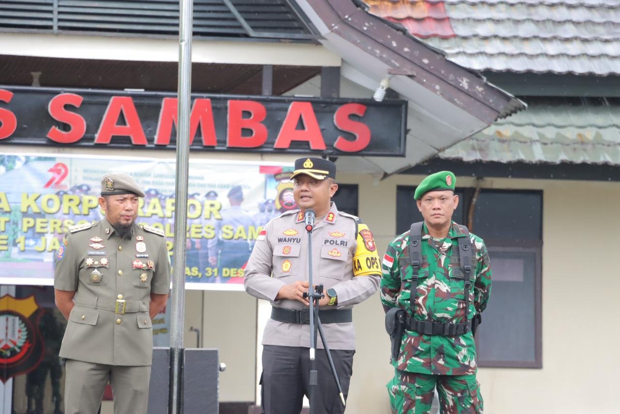 Aksaraloka com, Sambas — Polres Sambas mengerahkan sebanyak 515 personel gabungan untuk mengamankan perayaan Malam Tahun Baru 2026 di wilayah Kabupaten Sambas.