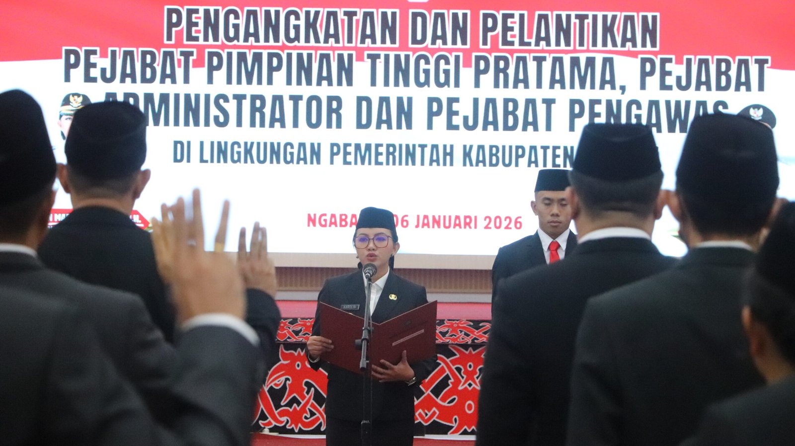 LANDAK – Bupati Landak, Karolin Margret Natasa, melantik Pejabat Pimpinan Tinggi Pratama, Pejabat Administrator dan Pejabat Pengawas di lingkungan Pemerintah Kabupaten Landak yang dilaksanakan di aula Kantor Bupati Landak, Selasa (06/01/2026).