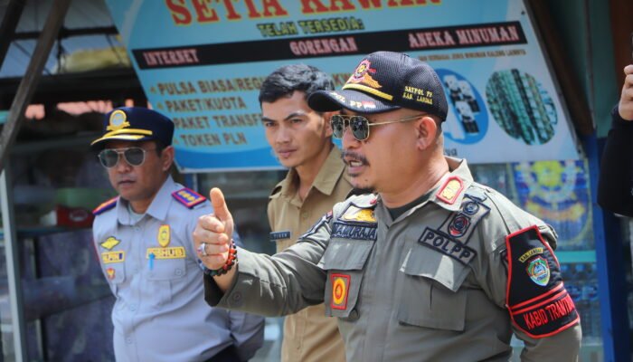 LANDAK – Tim gabungan Satpol PP, Dishub dan Diskumindag yang juga didukung Dinas Lingkunhan Hidup Kabupaten Landak menertibkan lapak pedagang di sepanjang jalan masuk kawasan Pasar Rakyat Kabupaten Landak, di Dusun Tungkul, Desa Hilir Kantor, Kecamatan Ngabang. Senin, 19 Januari 2026, siang.