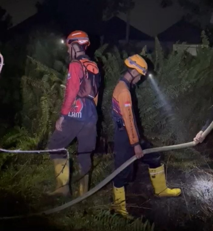 Sejak pukul 10.00 WIB, tim gabungan relawan pemadam kebakaran berjibaku memadamkan kobaran api yang dikhawatirkan merembet ke kawasan permukiman.