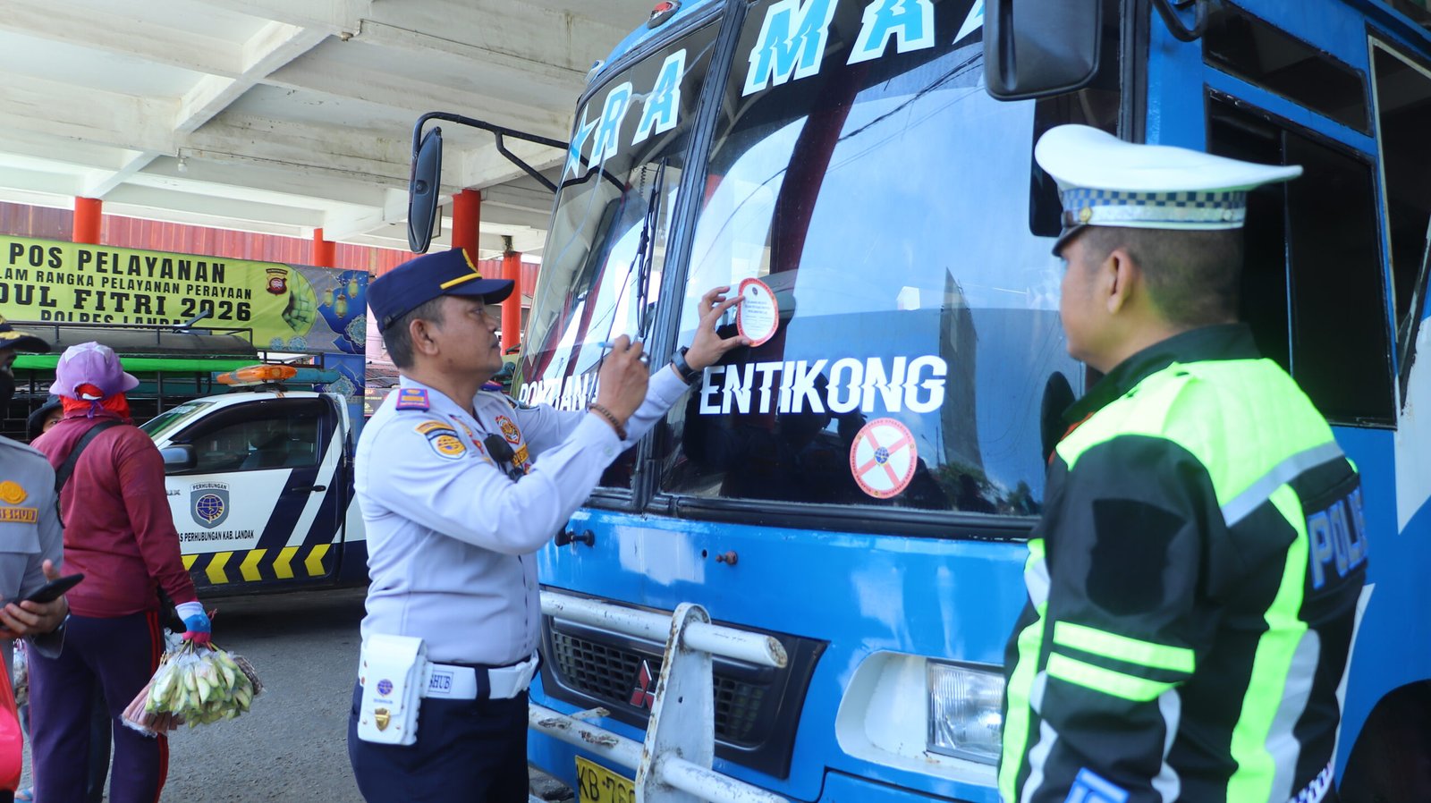 Pemeriksaan tersebut dilakukan sebagai bagian dari persiapan menghadapi arus mudik libur Hari Raya Idul Fitri, yang juga melibatkan personel Satlantas Polres Landak serta petugas dari Dinas Kesehatan untuk memastikan keselamatan transportasi selama masa mudik.