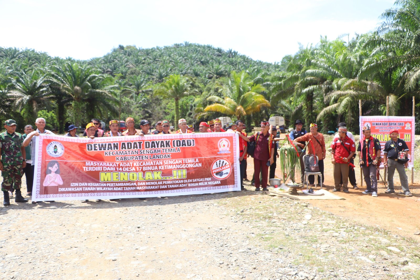 LANDAK – Dewan Adat Dayak (DAD) Kecamatan Sengah Temila, Kabupaten Landak bersama unsur masyarakat adat dari 14 desa dan 17 binua ketimanggongan resmi menyampaikan penolakan terhadap rencana pemasangan plang penguasaan lahan oleh Satgas Penertiban Kawasan Hutan (KPH) di wilayah Kecamatan Sengah Temila.