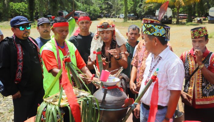 Penolakan dilakukan dengan pemasangan adat Pamabakng di Sekretariat DAD Sengah Temila, Dusun Bintang, Desa Pahauman. Kamis, 19 Maret 2026.