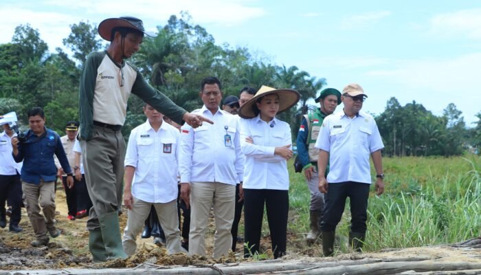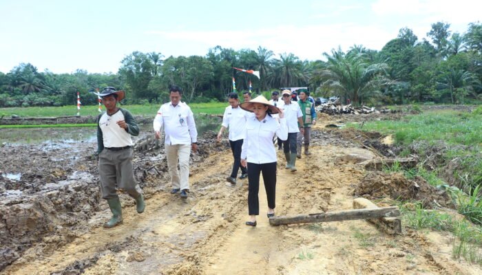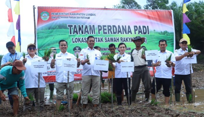 Bupati Landak, Karolin Margret Natasa, saat itu khusus datang untuk ikut memulai tanam perdana program Cetak Sawah Rakyat (CSR) 2025 bersama Kelompok Tani Semata Tani Andalan, Rabu (8/4/2026).