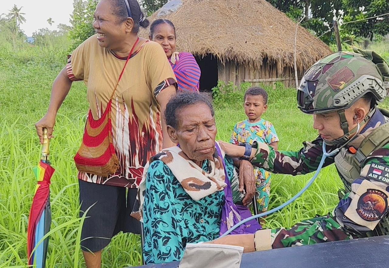 Senyum warga yang menerima pelayanan kesehatan menjadi gambaran eratnya kemanunggalan antara TNI dan rakyat di wilayah timur Indonesia.
