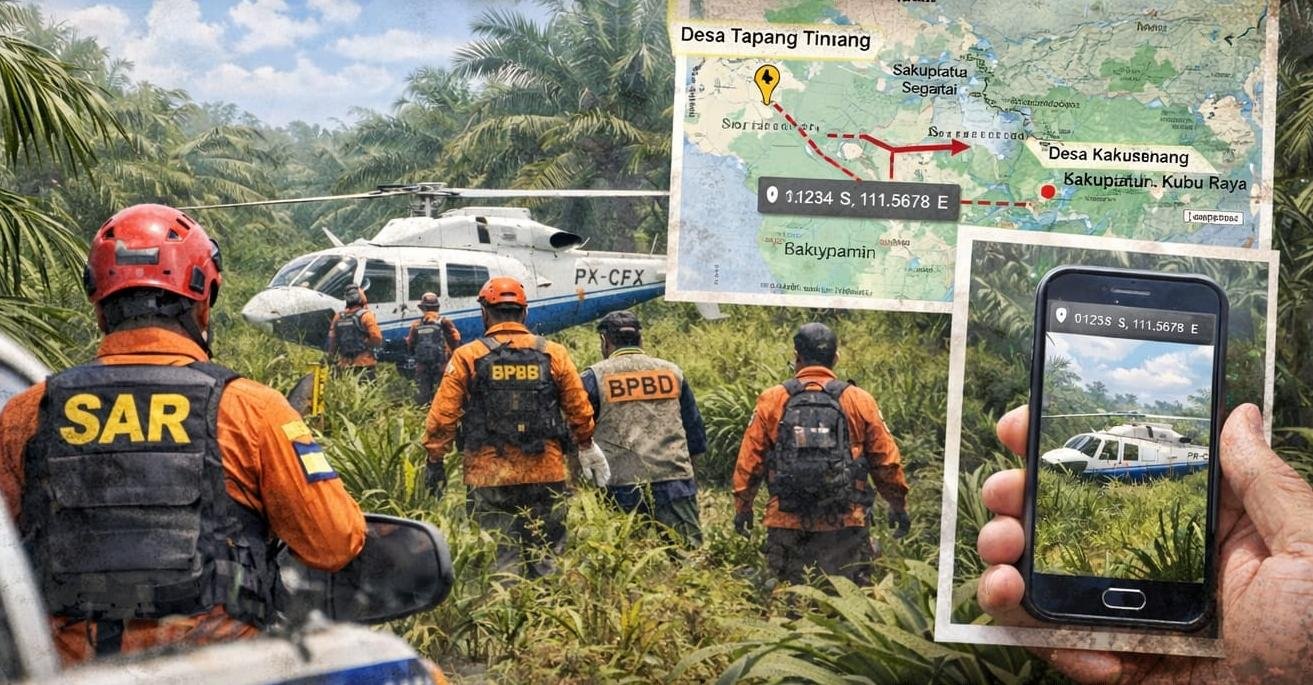 Helikopter PK-CFX diketahui sebelumnya hilang kontak di kawasan Desa Tapang Tingang, Kecamatan Nanga Taman, Kabupaten Sekadau, pada Kamis (16/4/2026), saat melakukan penerbangan dari Melawi menuju Kabupaten Kubu Raya.