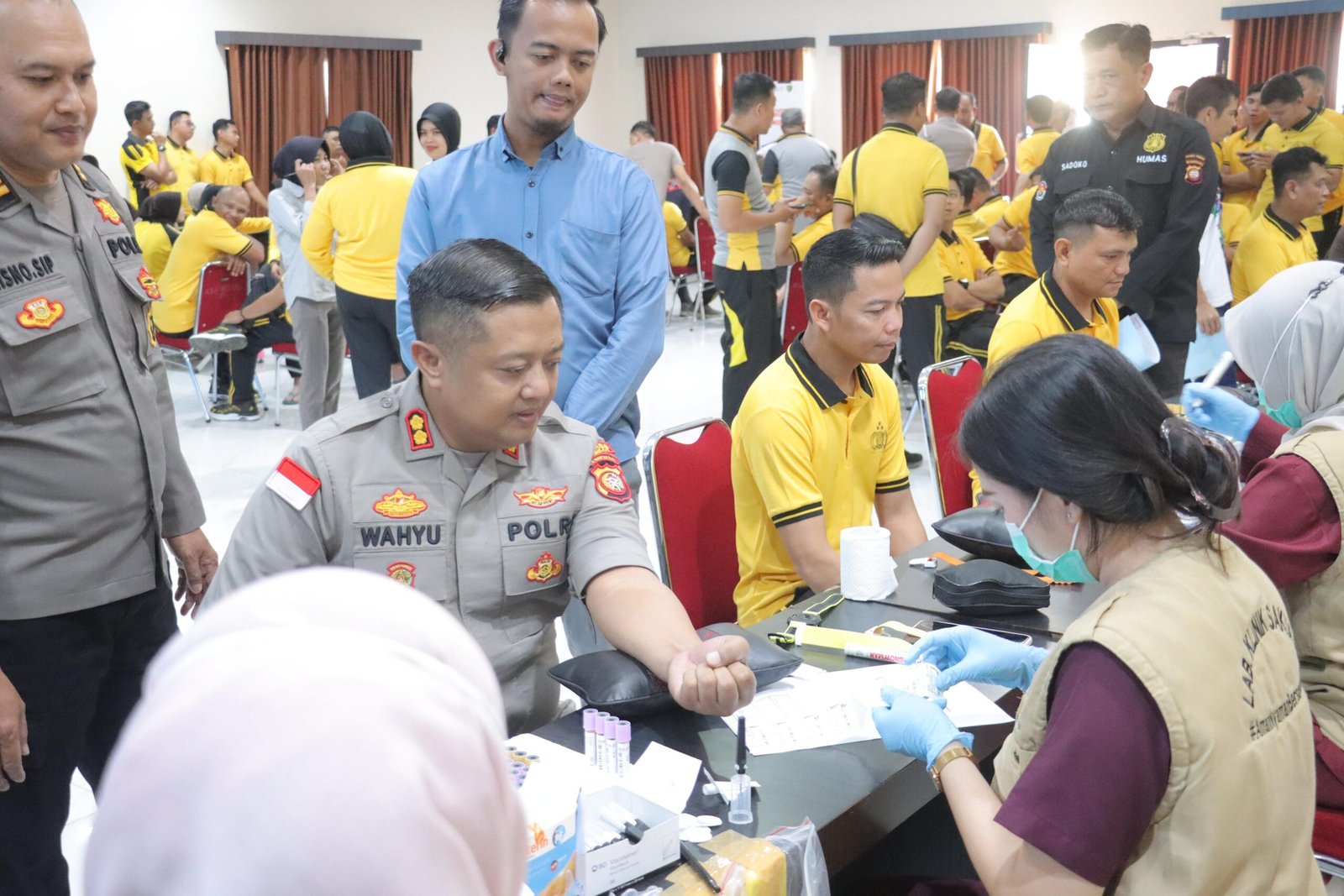 Ratusan personel, mulai dari Kapolres, pejabat utama, para kapolsek hingga ASN, turut ambil bagian dalam pemeriksaan yang dilaksanakan oleh Biddokkes Polda Kalimantan Barat.