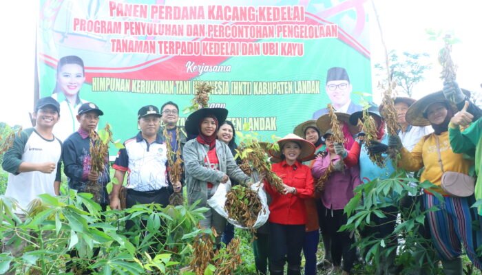 LANDAK — Lahan percontohan tanaman kacang kedelai yang dikembangkan melalui program kerja sama Himpunan Kerukunan Tani Indonesia (HKTI) bersama Pemerintah Kabupaten Landak mulai memasuki masa panen.
