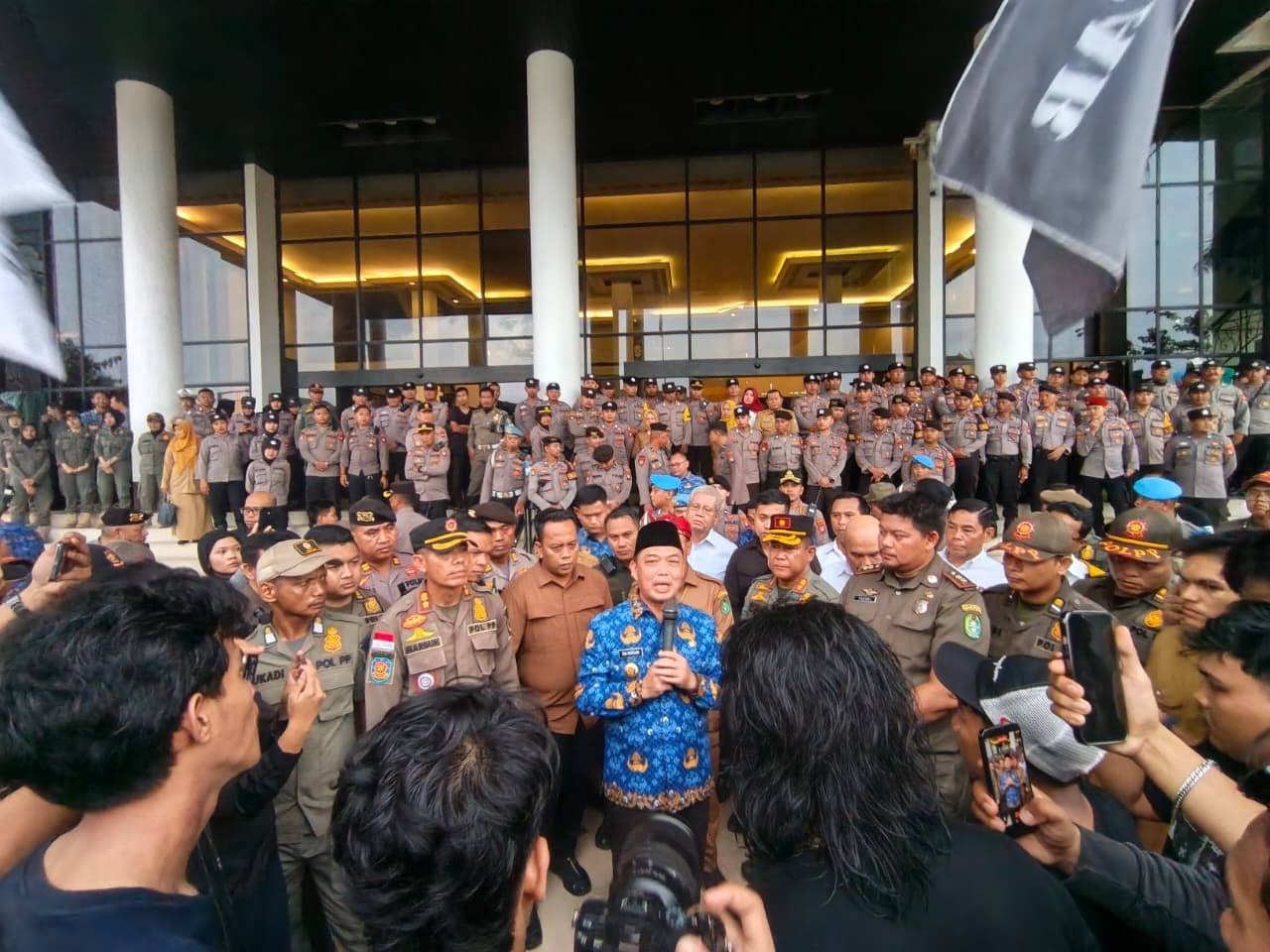 PONTIANAK – Aksi unjuk rasa puluhan mahasiswa di Kantor Gubernur Kalimantan Barat, Senin (27/4/2026), mendapat respons langsung dari Gubernur Ria Norsan yang turun menemui massa dan mendengar tuntutan terkait konflik di Air Upas, Kabupaten Ketapang.